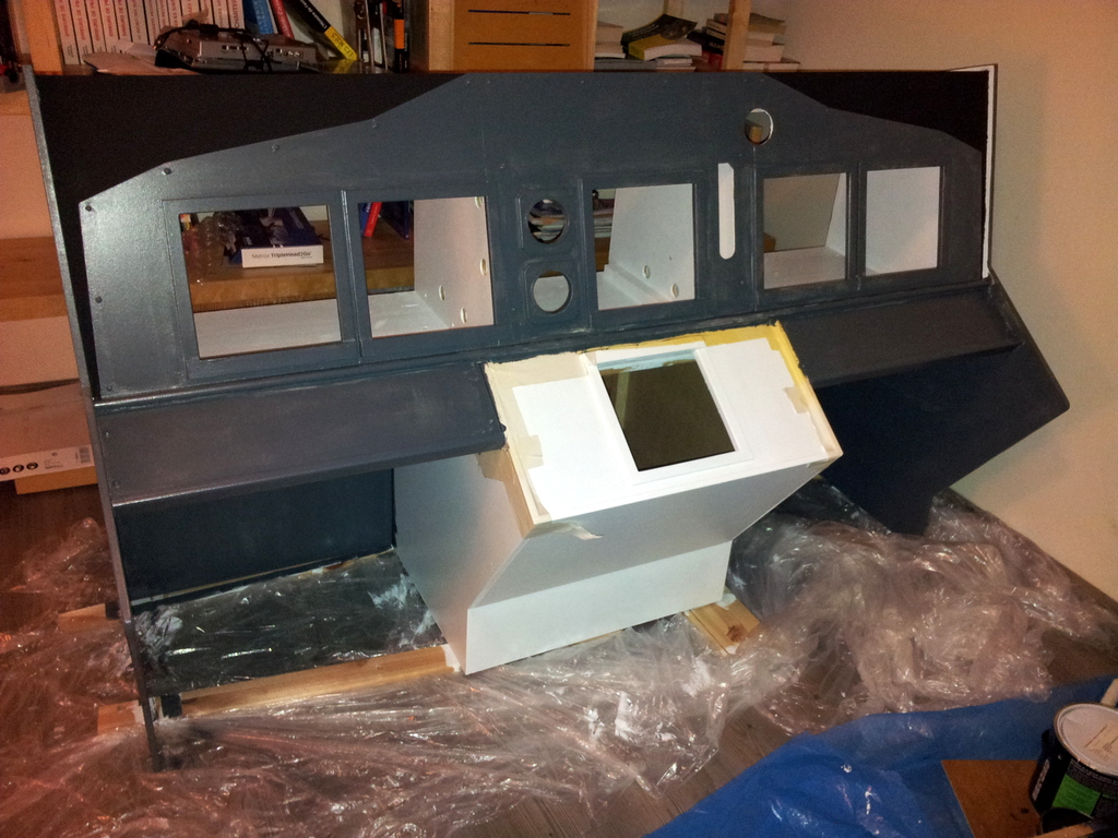 Après 3 couches de noir mat sur la partie haute et une 1ére couche de RAL7011