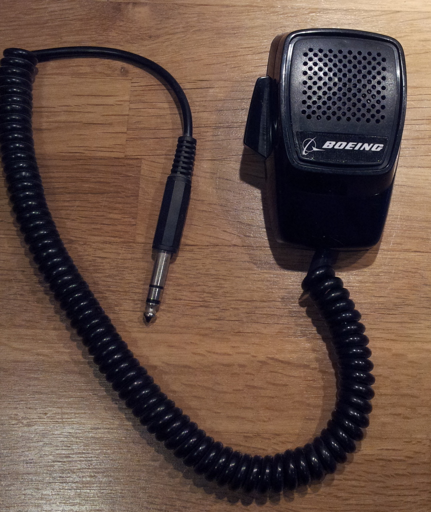 Toujour pour accompagner le pedestral, ce micro de cibie que j’ai trouvé pour 2€ dans un vide grenier. Après un démontage complet et nettoyage, j’ai changé le câble d’origine avec un cable audio équipé d’un prise jack qui viendra s’enficher dans la prise du pedestal. J’ai également enlevé l’autocollant Marshal pour le remplacer par Boeing ; impression sur papier standard, plastification, découpe et collage.