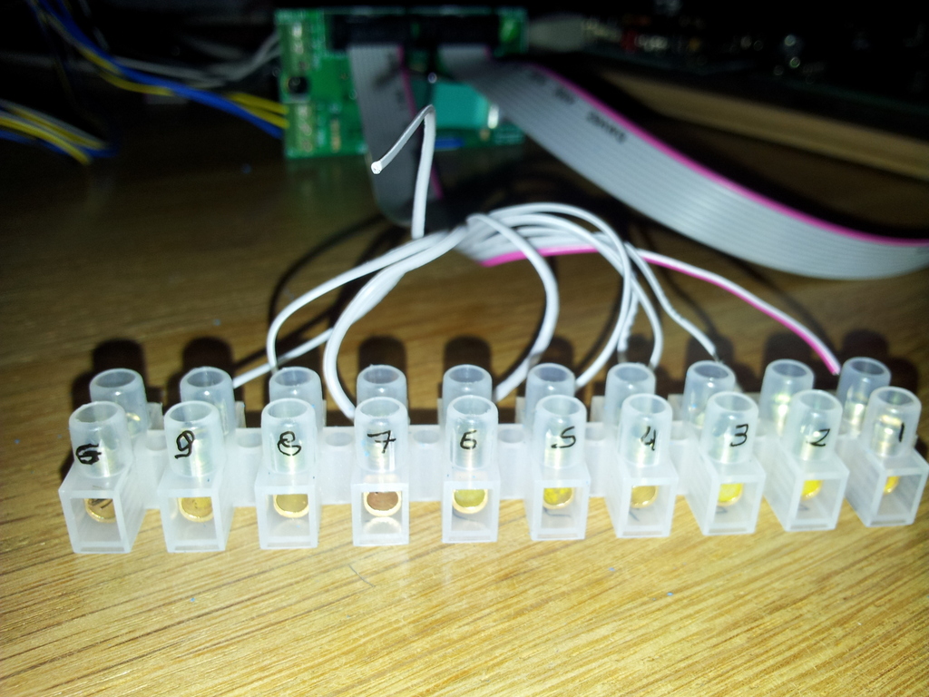 A noter qu’en utilisant le câble plat fournit avec le module sixpack, le GND est à l’opposé du cable rouge et le cable rouge est noté N.1
