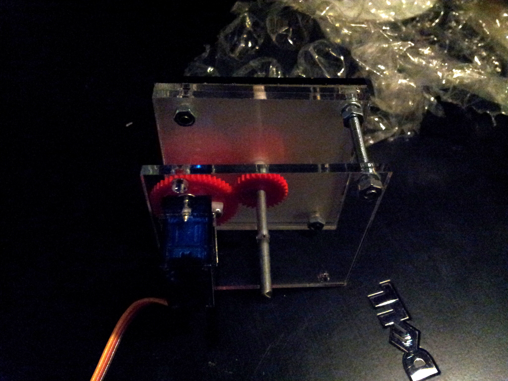 Vue de derrière, on voit qu’il faudra enlever la plaque de plexi sur laquelle est fixé le servo.