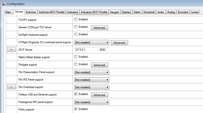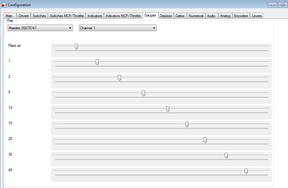 Dans Prosim737, activer le support Pololu et ensuite aller dans config et cliquer sur l’onglet Gauges.