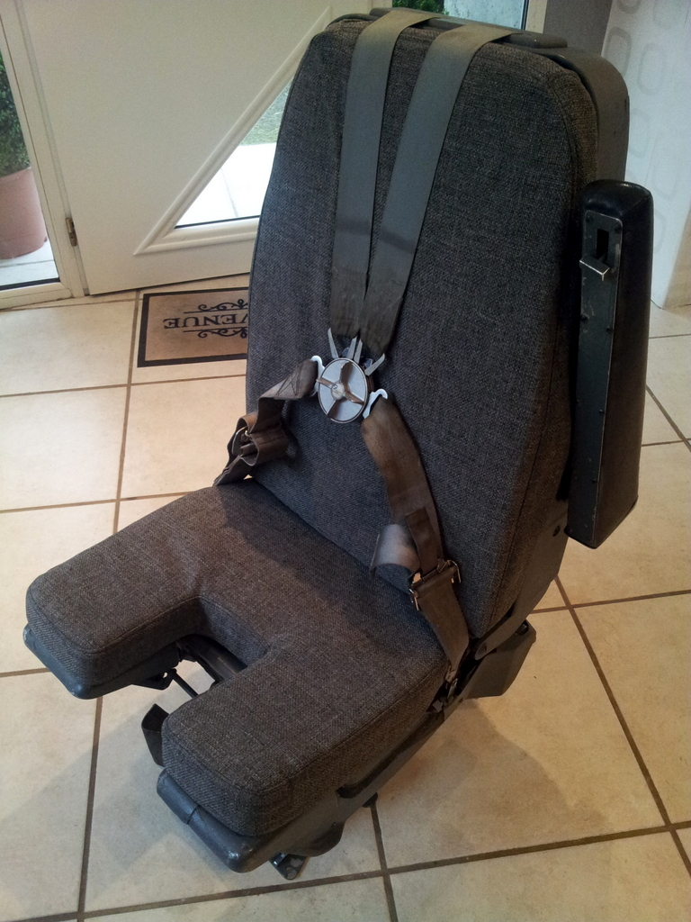 J’ai eu la chance de trouver un vrai siège de Boeing 737 venant de la compagnie Southwest airlines. Ce qui est plutôt rare, est de l’avoir trouvé en Europe évitant ainsi les frais d’importation, de douane et de transport exorbitants pour les sièges qui viennent pour la plupart des USA.