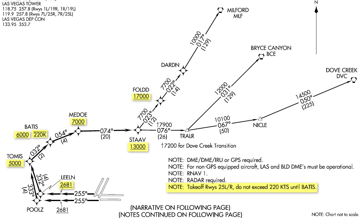 A priori nous aurions la SID STAAV5 au départ de la 25R. On repére bien les restrictions des altitutes et également de vitesse. On voit ici que jusque point BATIS nous ne devons pas dépasser les 220kts.