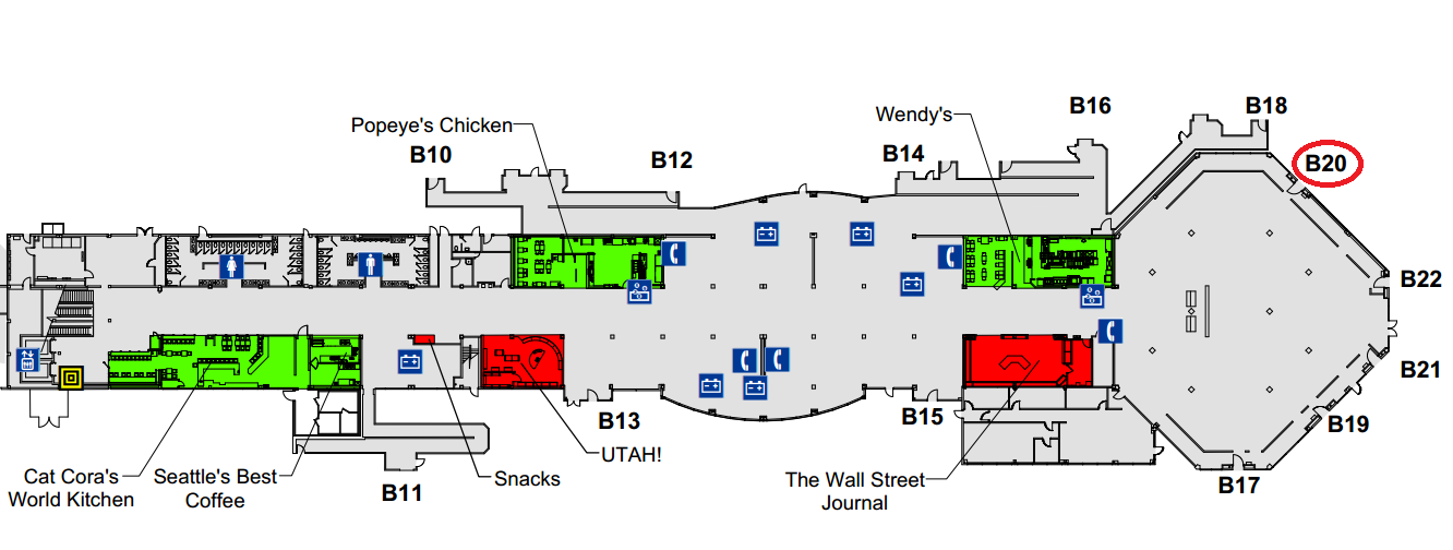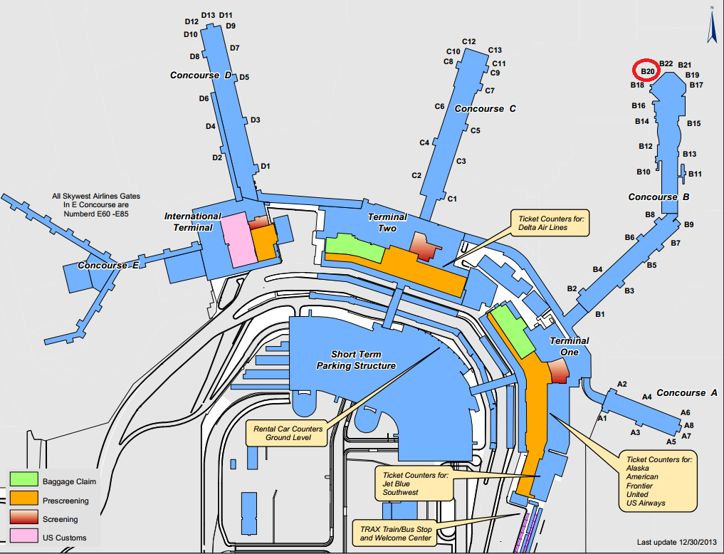 En se connectant sur le site de l’aéroport de Salt Lake City, on voit que notre arrivée est prévue à 11:30 en porte B20