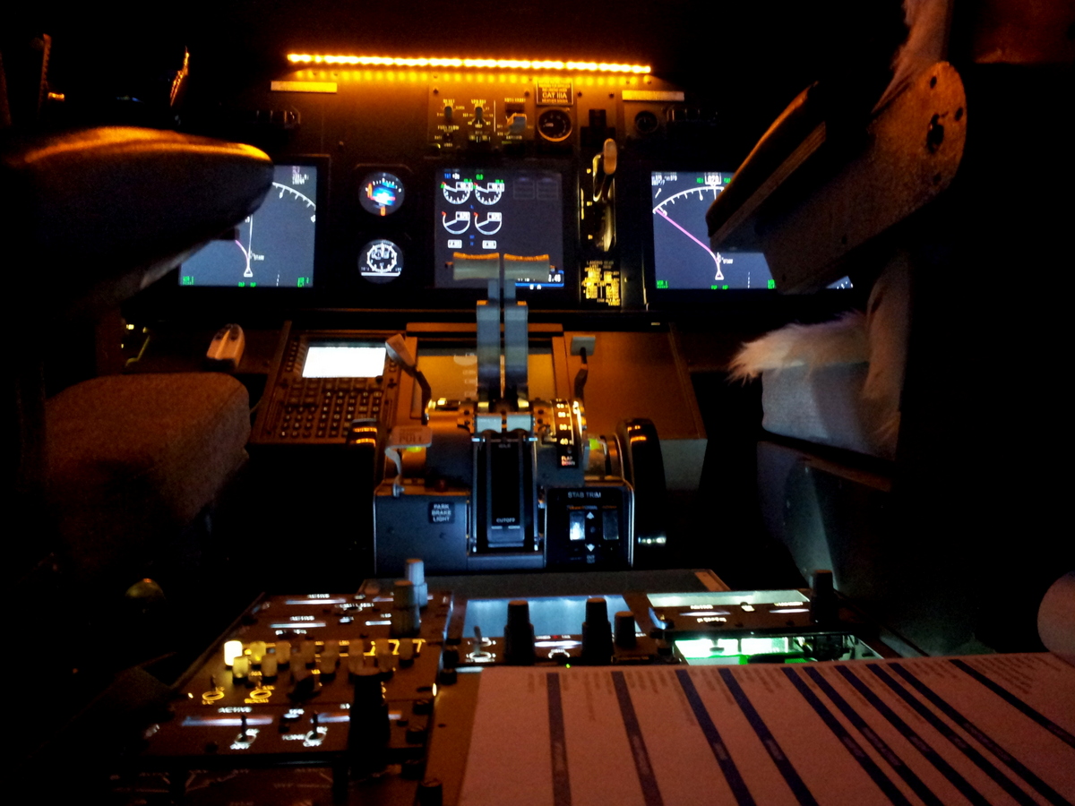 Nous nous trouvons dans notre cockpit en situation cold & dark à la porte C14 du terminal 1 de Las Vegas