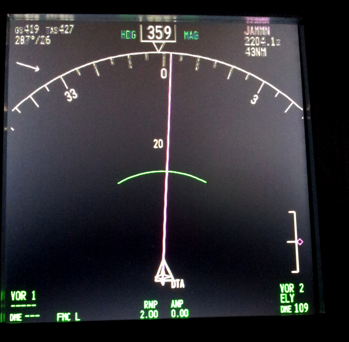 Passage du point DELTA, le prochain point est JAMMN à 43NM
