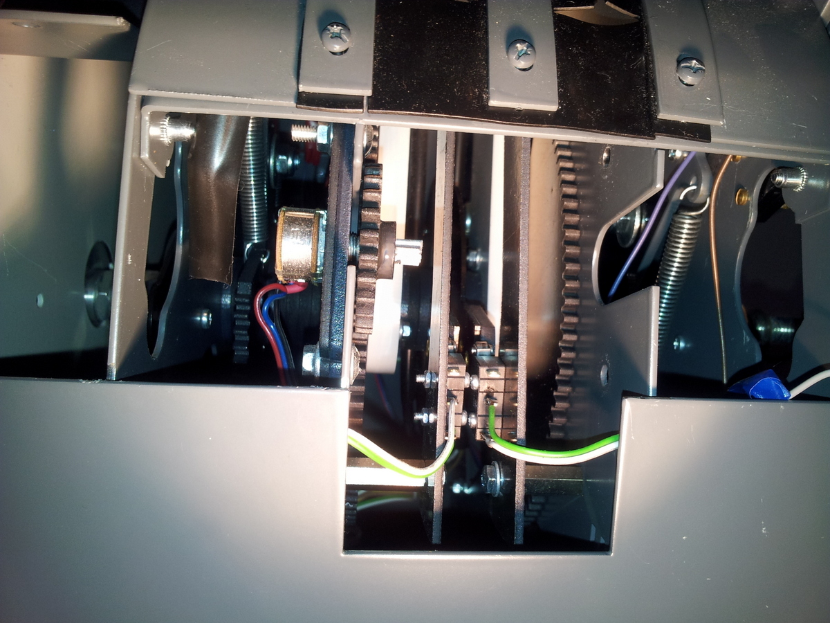 Vue de derrière avec le potentiomètre et sa roue dentée du moteur N°1 à gauche