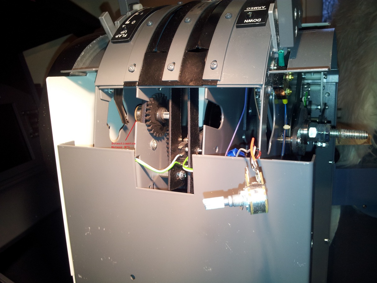 J’ai profité du démontage de throttle pour étudier les possibilités de motorisation et je dois dire que pour les manettes des gaz, cela me parait vraiment difficile, par contre pour la roue de trim et le frein de parking, je pense qu’il y aurait moyen de faire quelque choses. Je vais étudier la chose et y reviendrait dans un autre post si je décide de réaliser l’opération.