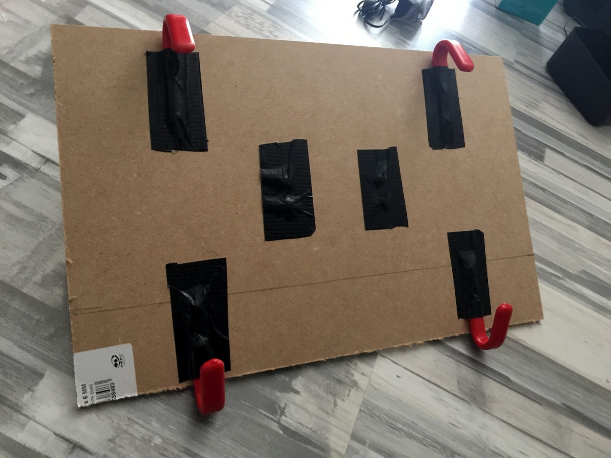 Pour pouvoir mettre et enlever le PC facilement, car je l’utilise aussi en dehors du cockpit, j’ai construit un support en bois avec des attaches recouvertes de caoutchouc pour ne pas endommager l’écran et recouvert les écrous avec du scotch noir épais.