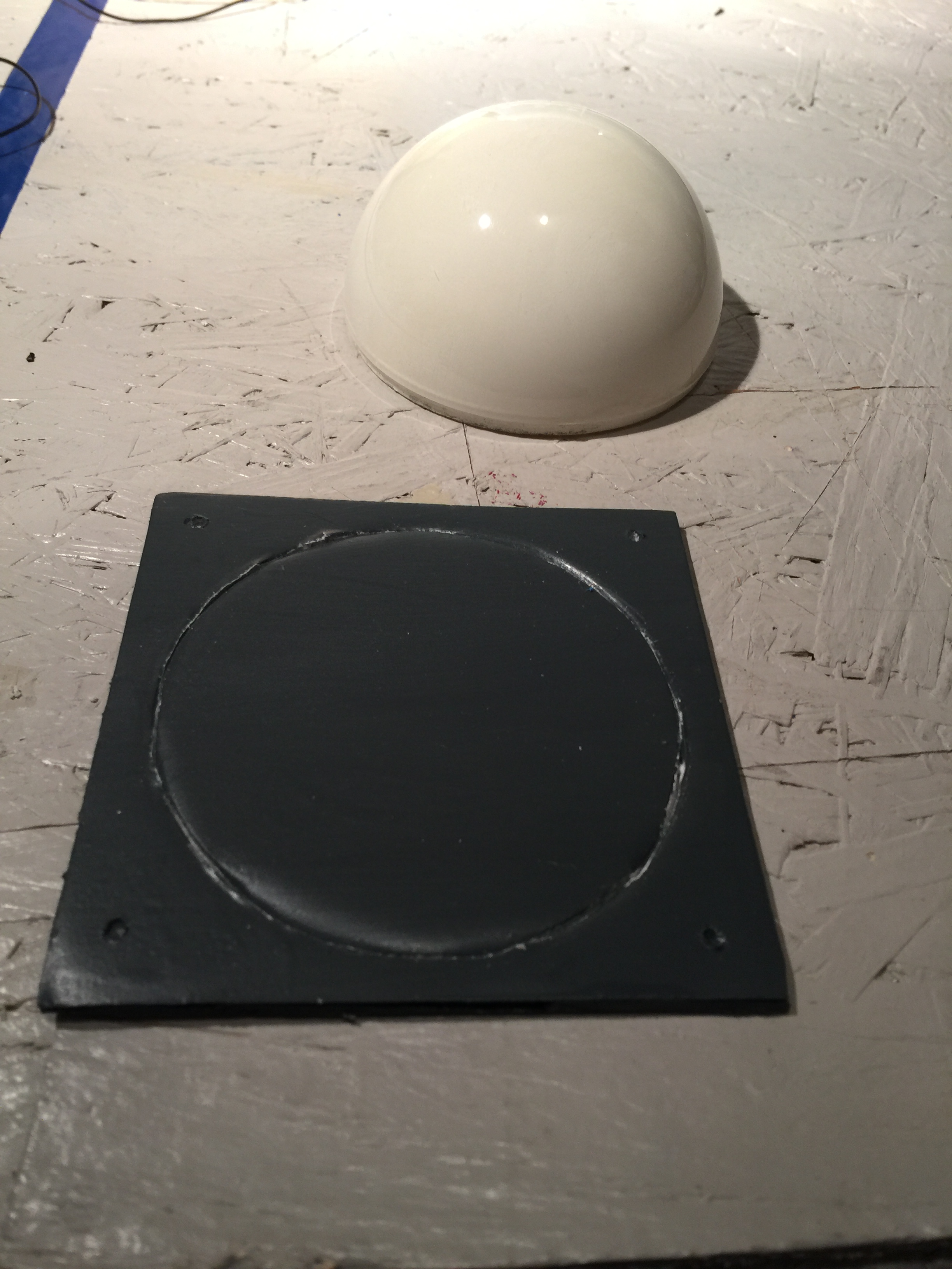 Ensuite on positionne le dome au centre du support et on appuie pour marquer l’empreinte. Le but va être ensuite de creuser un peu pour que le dome s’enfonce dans le support
