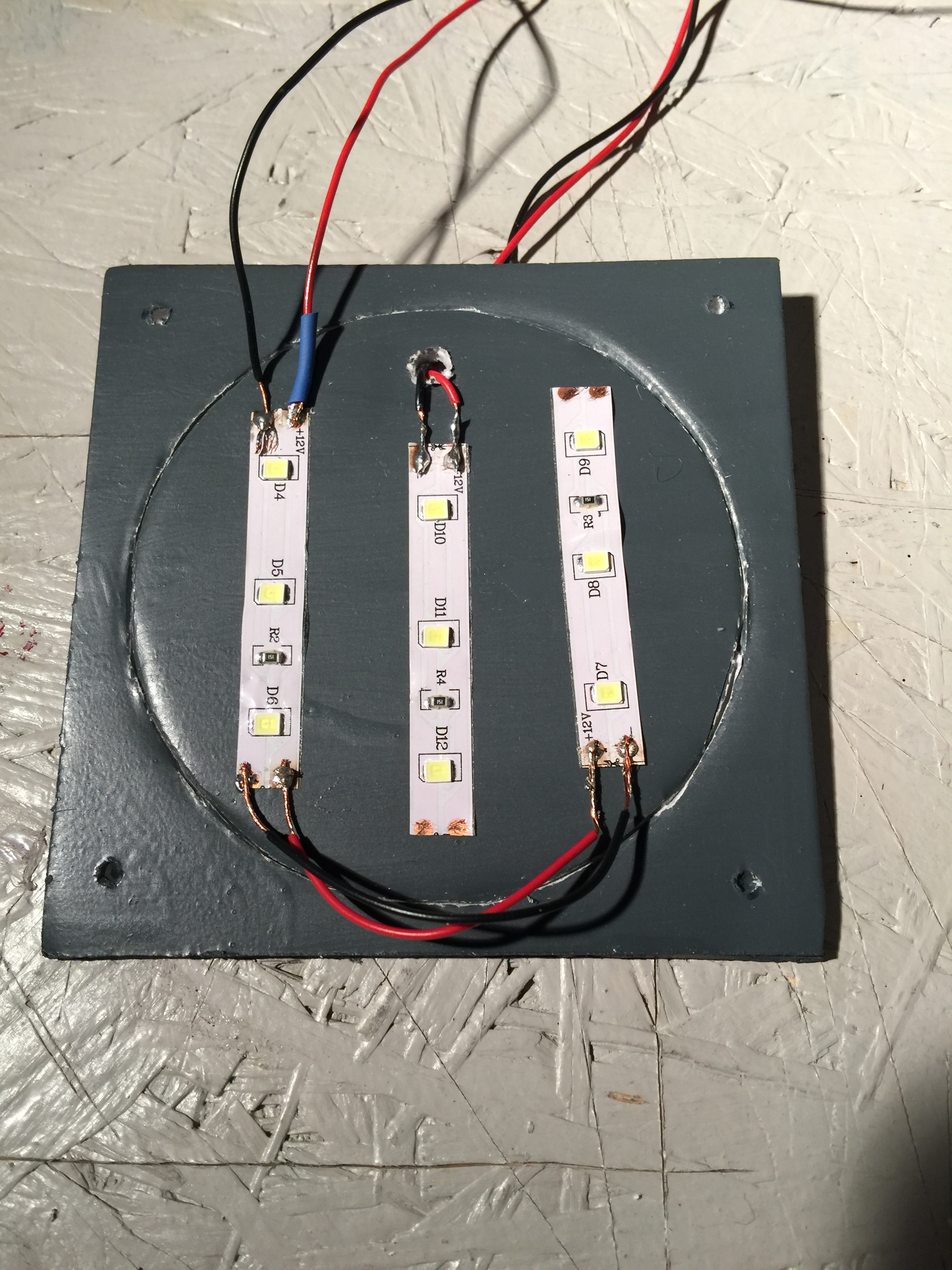 Pour l’éclairage, je voulais simuler les 2 types d’intensité à savoir DIM et BRIGHT. J’ai donc mis en place 2 connections. 1 connection avec 3 leds et 1 connection avec 2×3 leds