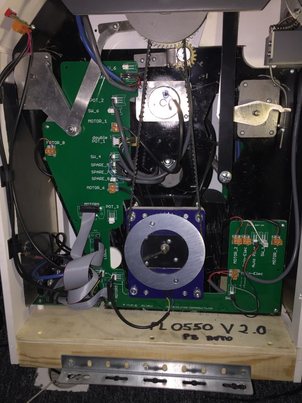 On voit sur la photo ci-dessus le moteur des roue de trim avec la courroie.