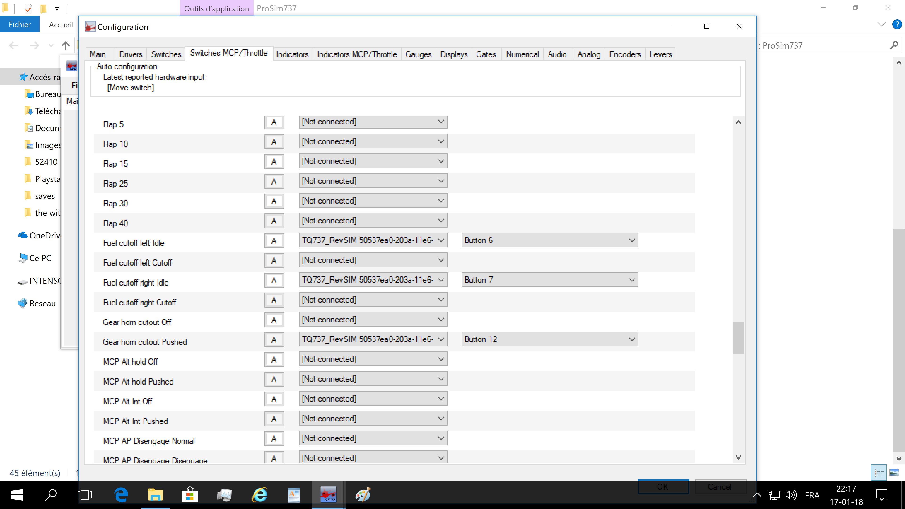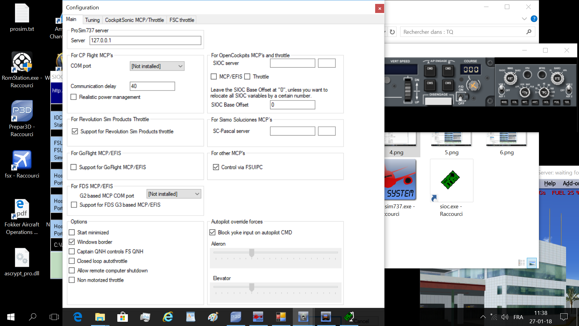 Au niveau Prosim il faut activer dans le module MCP l’option Support for Revolution Simproduct Throttle