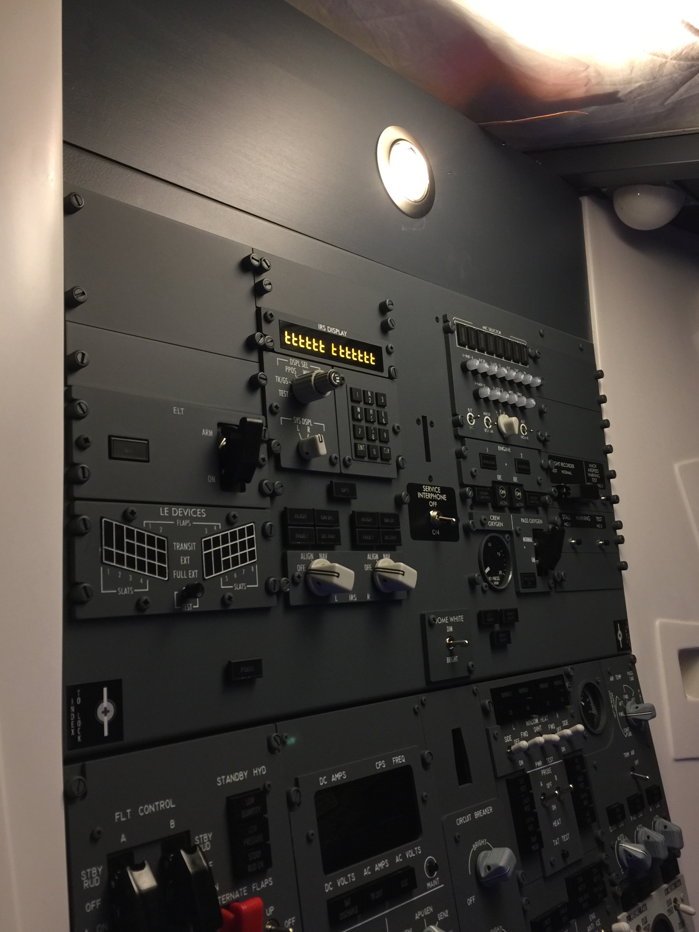 J’en ai profité pour y mettre un spot LED 12v connecté à l’un des switches inop du FWD overhead.
