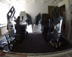 Les palonniers sont connectés. Le reste du cockpit rebranché et le projecteur mis en place. Les premiers test de mise …